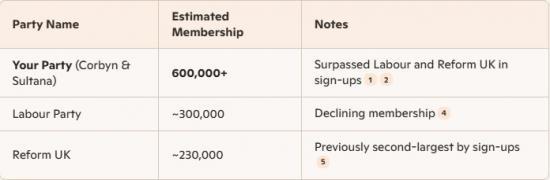 As of August 2025, Jeremy Corbyn's new political movement currently operating under the placeholder name "Your Party" has seen a massive surge in support with over 600,000 people signed up in just under a week.