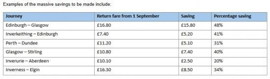 Removing peak fares will mean significant savings for customers across the country, with some journeys set to reduce by almost 50 per cent - including those between Edinburgh and Glasgow.