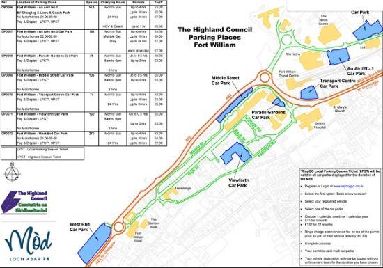 A map of the car parks in Fort William (above) highlights the seven car parks where a discounted rate will apply.