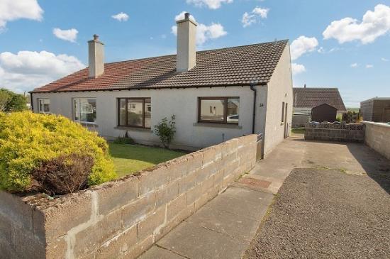 This delightful semi-detached bungalow offers a perfect blend of comfort and modern living, located in Scrabster, just 2 miles from Thurso town centre and less than a mile from the busy Scrabster Harbour. Built in 1982, the property features two well-proportioned bedrooms, and a large box/storage room. This spacious bungalow benefits from electric central heating with an open coal fire in the lounge, perfect for cosy evenings in. The modern kitchen has shaker style wall and base units with a stainless-steel sink and drainer, and extractor hood, complete with a dining area. The layout is both practical and appealing, ensuring that every corner of the home is utilised effectively. The Front and rear garden are well maintained and mainly laid to grass with a tarmac driveway to the side offering ample parking for several vehicles.